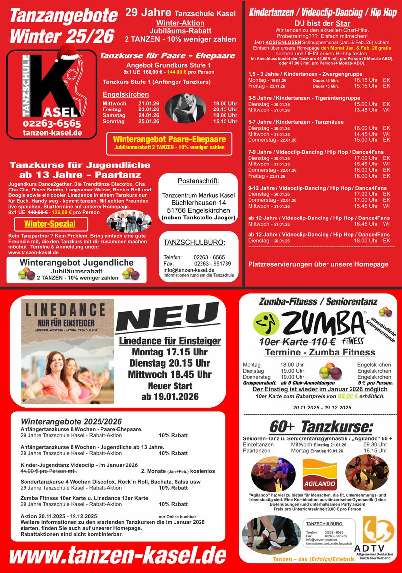 Danach können Sie die Tanzkurse wieder zu den Winterpreisen 2025/2026 beziehen.