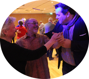 Langsamer Walzer, Tango, Foxtrott, Cha-Cha-Cha, Rumba, Jive und Discofox. Das Tanzen geschieht in lockerer Atmosphäre und ganz ohne Zwang. Anschließend sitzen wir immer noch gemeinsam bei einer Tasse Kaffee.